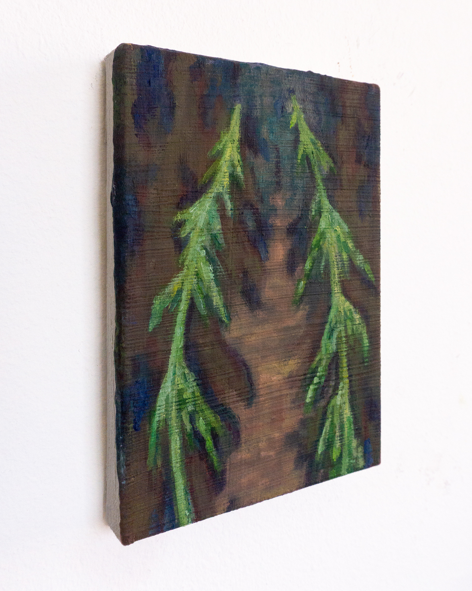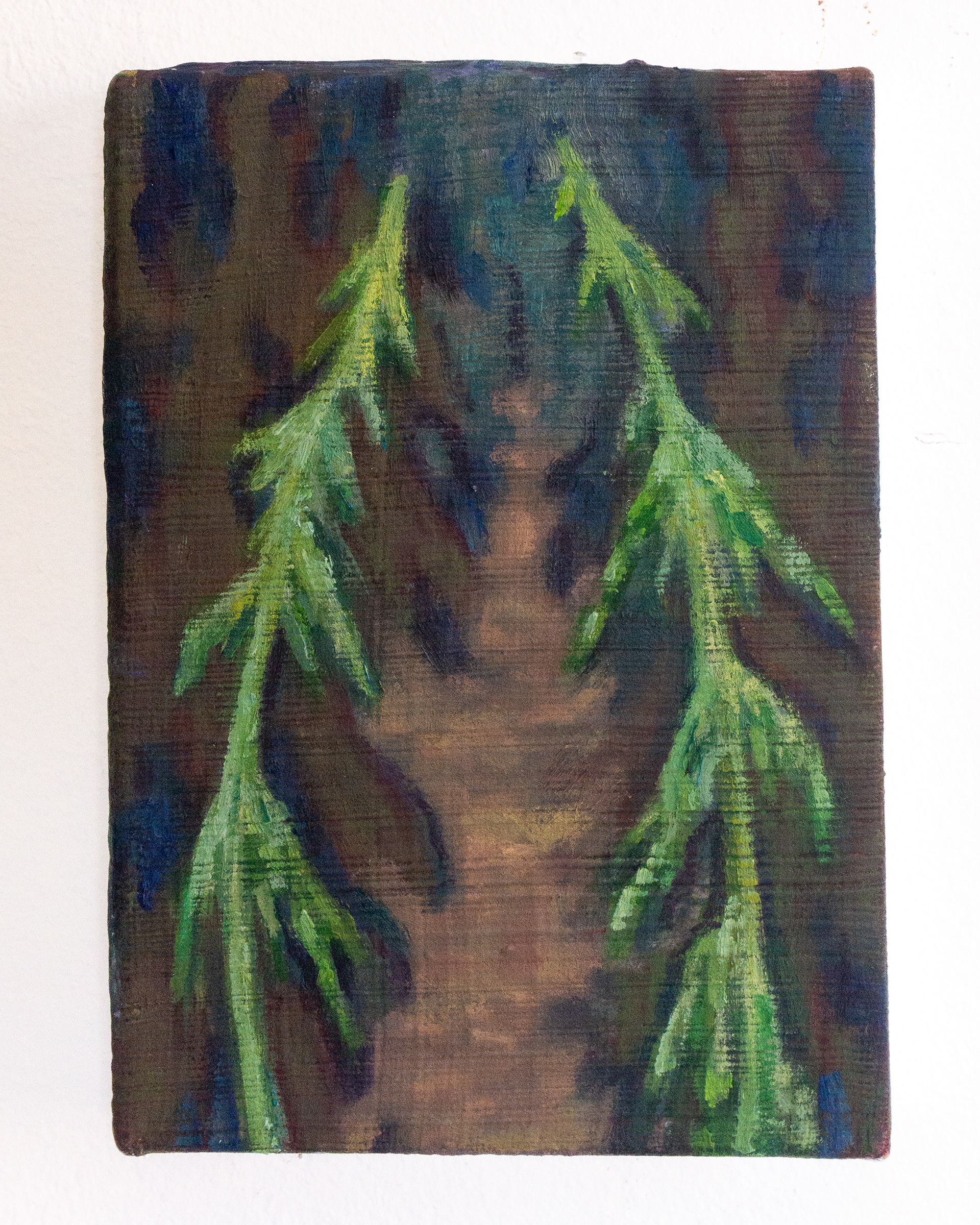 Side view of Entrance (Two Firs), Oil on canvas, 5 x 7 inches, 2026